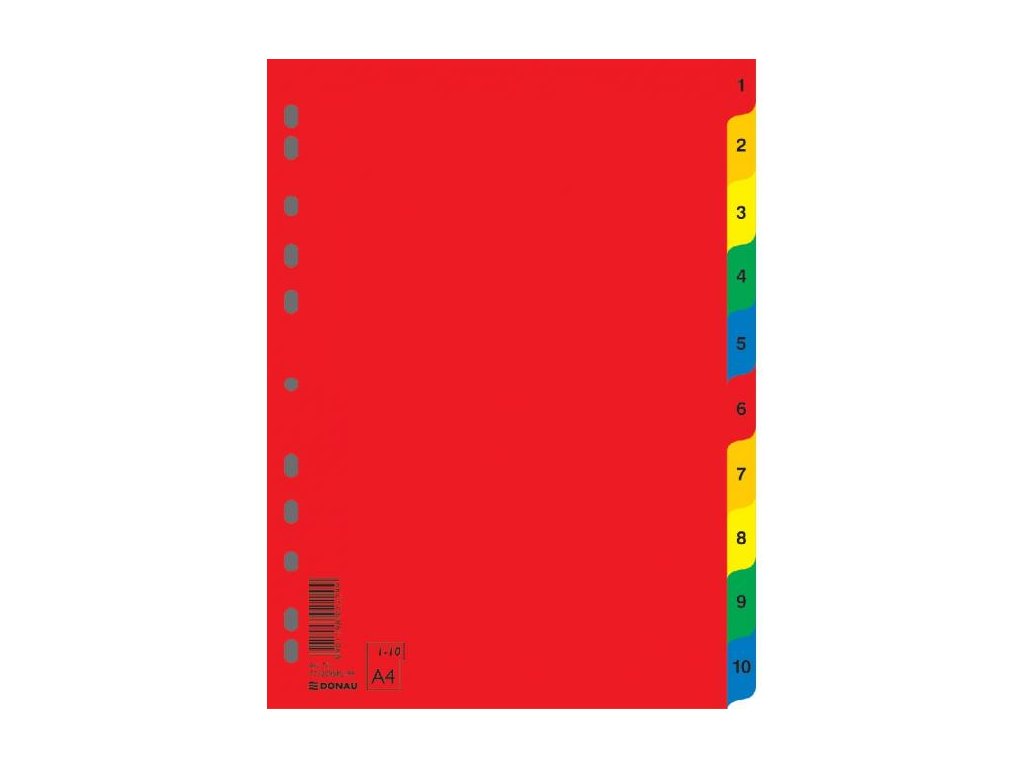Rozraďovač formátu A4 vyrobený z tuhého polypropylénu. Jednotlivé stránky v rôznych farbách, multiperforácia na použitie rozraďovača v krúžkovom aj pákovom zakladači. Väčšie balenie 25 sád.Rozmery 230x297mm