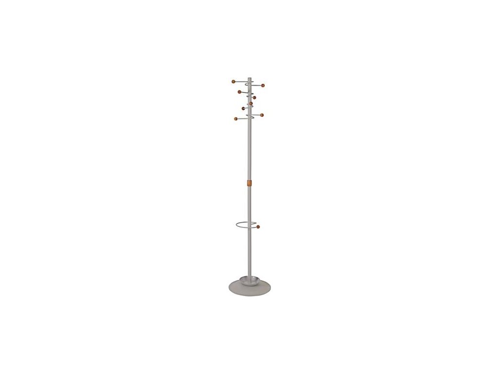 Podlahový vešiak, kovová konštrukcia, drevené doplnky, "Dallas", strieborný