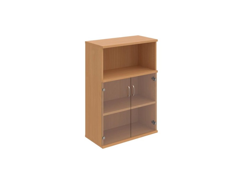 Kombinovaná skriňa - dvere/nika. Kancelárske skrine STRONG majú robustnú konštrukciu a vyššiu nosnosť políc ako bežné kancelárske skrine.V ponuke sú skriňové moduly s výškou 185 cm, 111 cm alebo 74 cm a šírky 80 cm alebo 40 cm. Hĺbka všetkých modelov skriňového radu STRONG je 40 cm.Chrbát, vyrobený z 8 mm hrubých dosák, je obojstranne pohľadový, takže skrine môžete použiť ako priestorový deliaci prvok. Hrúbka samotných políc je 25 mm, čo znamená nosnosť 80 kg na 1 policu.Korpusy, dvierka a police skríň sú olepené odolnou 2mm ABS hranou, ktorá garantuje dostatočnú ochranu proti poškodeniu.