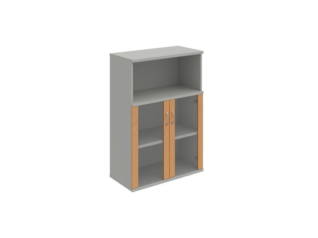 Kombinovaná skriňa - dvere/nika. Kancelárske skrine STRONG majú robustnú konštrukciu a vyššiu nosnosť políc ako bežné kancelárske skrine.V ponuke sú skriňové moduly s výškou 185 cm, 111 cm alebo 74 cm a šírky 80 cm alebo 40 cm. Hĺbka všetkých modelov skriňového radu STRONG je 40 cm.Chrbát, vyrobený z 8 mm hrubých dosák, je obojstranne pohľadový, takže skrine môžete použiť ako priestorový deliaci prvok. Hrúbka samotných políc je 25 mm, čo znamená nosnosť 80 kg na 1 policu.Korpusy, dvierka a police skríň sú olepené odolnou 2mm ABS hranou, ktorá garantuje dostatočnú ochranu proti poškodeniu.