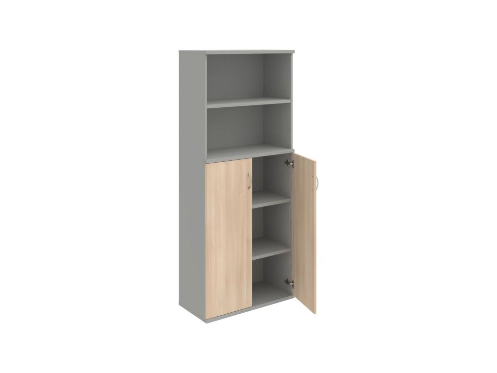 Kombinovaná skriňa - dvere/nika. Kancelárske skrine STRONG majú robustnú konštrukciu a vyššiu nosnosť políc ako bežné kancelárske skrine.V ponuke sú skriňové moduly s výškou 185 cm, 111 cm alebo 74 cm a šírky 80 cm alebo 40 cm.Hĺbka všetkých modelov skriňového radu STRONG je 40 cm.Chrbát, vyrobený z 8 mm hrubých dosák, je obojstranne pohľadový, takže skrine môžete použiť ako priestorový deliaci prvok. Hrúbka samotných políc je 25 mm, čo znamená nosnosť 80 kg na 1 policu.Korpusy, dvierka a police skríň sú olepené odolnou 2mm ABS hranou, ktorá garantuje dostatočnú ochranu proti poškodeniu.