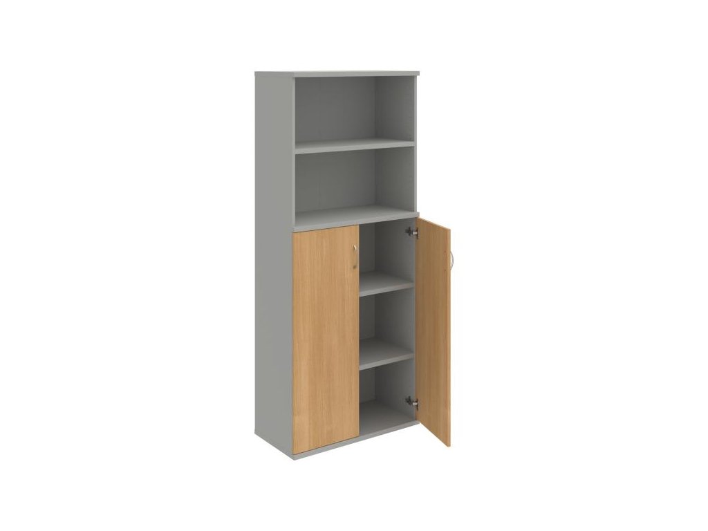 Kombinovaná skriňa - dvere/nika. Kancelárske skrine STRONG majú robustnú konštrukciu a vyššiu nosnosť políc ako bežné kancelárske skrine.V ponuke sú skriňové moduly s výškou 185 cm, 111 cm alebo 74 cm a šírky 80 cm alebo 40 cm.Hĺbka všetkých modelov skriňového radu STRONG je 40 cm.Chrbát, vyrobený z 8 mm hrubých dosák, je obojstranne pohľadový, takže skrine môžete použiť ako priestorový deliaci prvok. Hrúbka samotných políc je 25 mm, čo znamená nosnosť 80 kg na 1 policu.Korpusy, dvierka a police skríň sú olepené odolnou 2mm ABS hranou, ktorá garantuje dostatočnú ochranu proti poškodeniu.