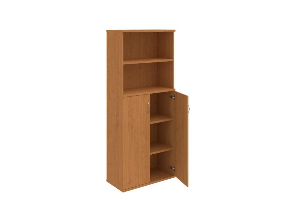 Kombinovaná skriňa - dvere/nika. Kancelárske skrine STRONG majú robustnú konštrukciu a vyššiu nosnosť políc ako bežné kancelárske skrine.V ponuke sú skriňové moduly s výškou 185 cm, 111 cm alebo 74 cm a šírky 80 cm alebo 40 cm.Hĺbka všetkých modelov skriňového radu STRONG je 40 cm.Chrbát, vyrobený z 8 mm hrubých dosák, je obojstranne pohľadový, takže skrine môžete použiť ako priestorový deliaci prvok. Hrúbka samotných políc je 25 mm, čo znamená nosnosť 80 kg na 1 policu.Korpusy, dvierka a police skríň sú olepené odolnou 2mm ABS hranou, ktorá garantuje dostatočnú ochranu proti poškodeniu.