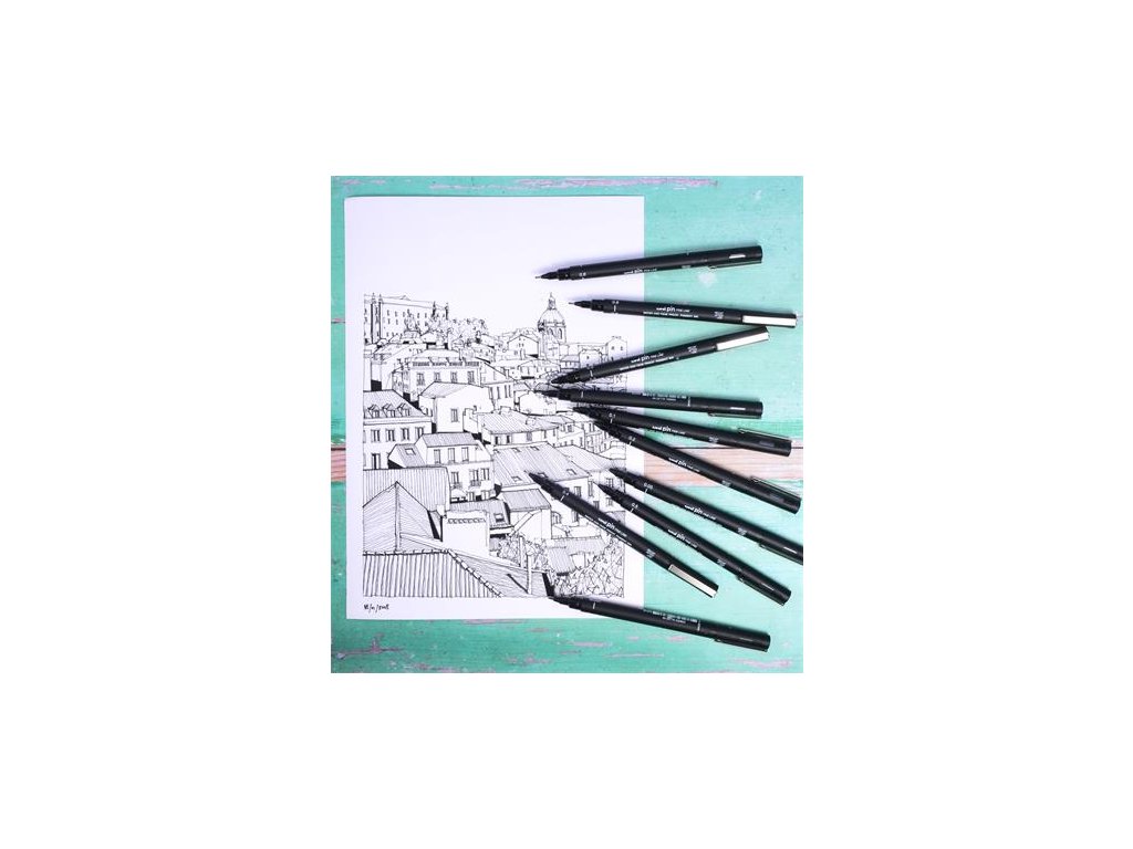 UNI PIN je popisovač na kreslenie, ktorú preferujú architekti, umelci a grafickí dizajnéri. 0,4 mm-ový PIN je ideálny pre jemné detaily a voľné tieňovanie. Široká škála veľkostí hrotu PIN vám umožňuje vytvárať ostré, čisté línie a dokonalé techniky, ako je bodkované tieňovanie, šrafovanie a tieňovanie. - tuhá pigmentová atramentová línia sa ľahko používa na akvarel, pretože atrament sa nerozmazáva ani keď je vlhký - Hrot je vystužený oceľou - obsahuje neblednúci, vodeodolný uni Super Ink atramentDodatočné parametre