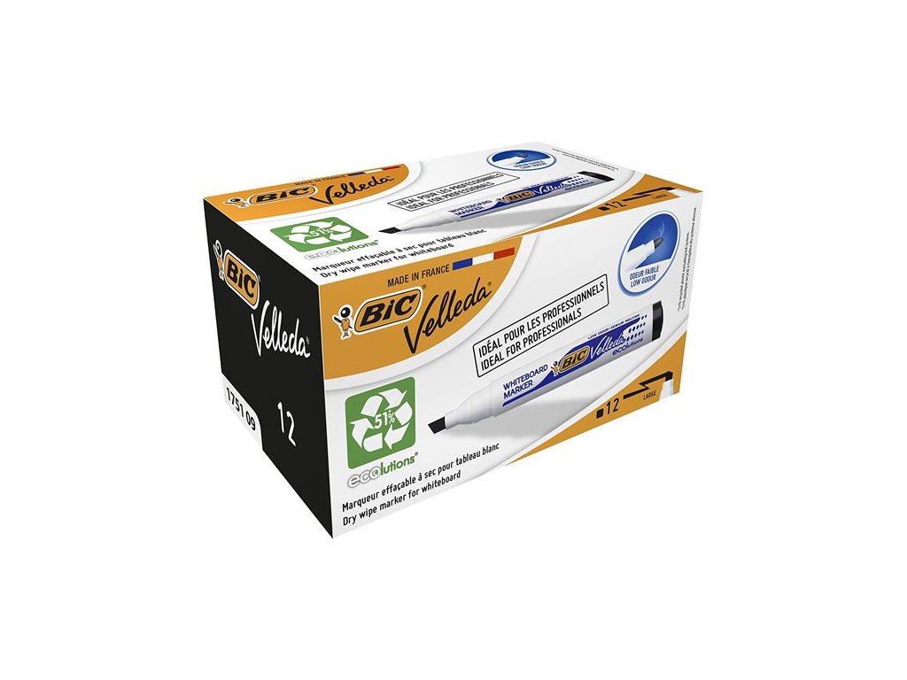 Popisovač na biele a flipchartové tabule, 1,1-5,6 mm, zrezaný hrot, BIC "Velleda ecolutions", čierny