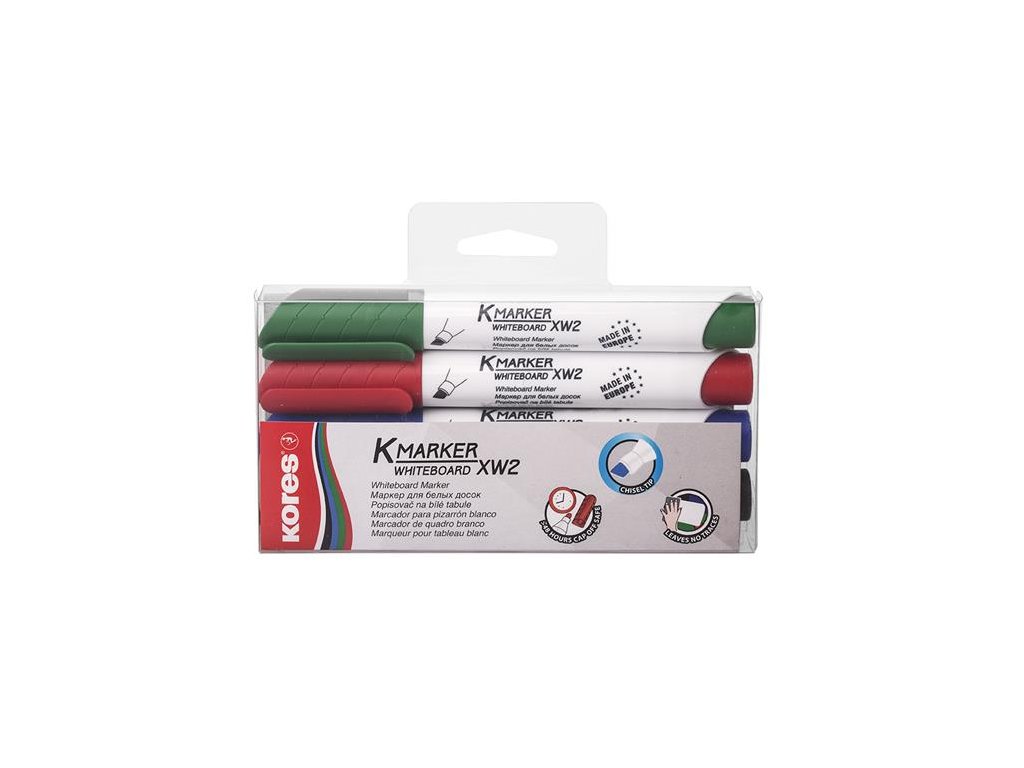 Popisovač na biele a flipchartové tabule, sada, 3-5 mm, zrezaný hrot, KORES "K-Marker XW2", 4 rôznych farieb