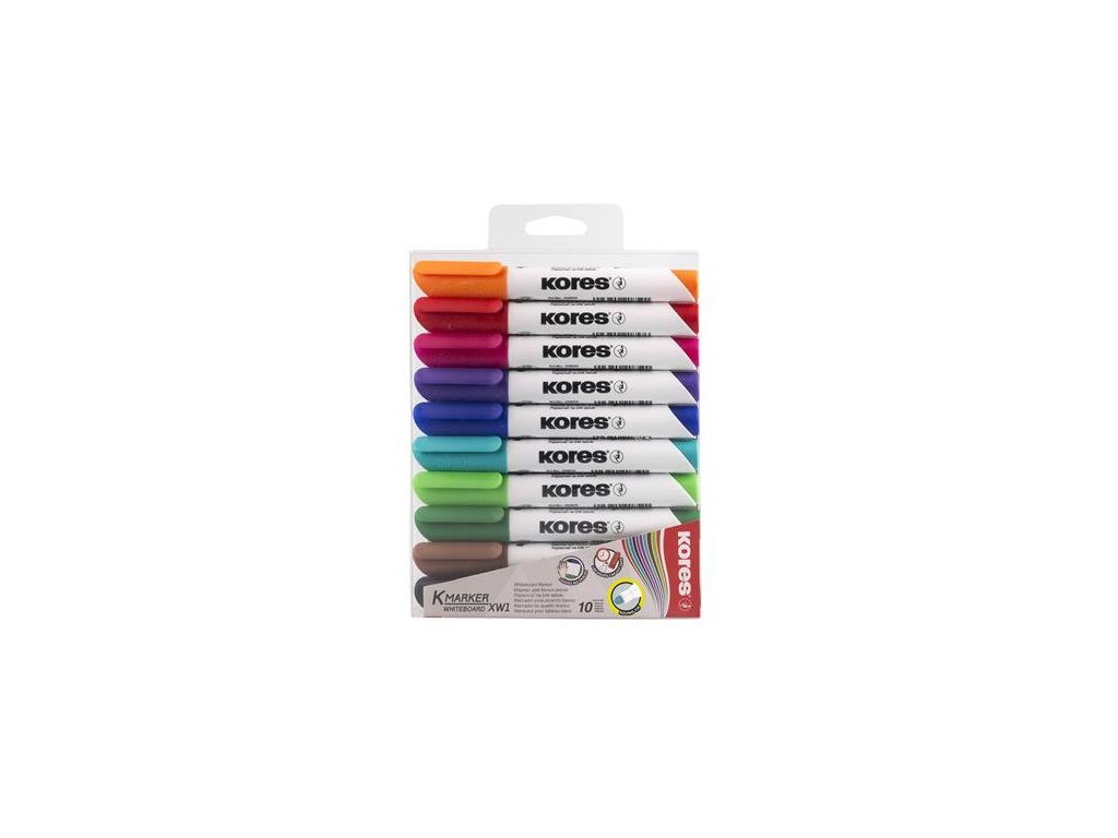Popisovač na biele a flipchartové tabule, sada, 3 mm, kužeľový hrot, KORES "K-Marker XW1", 10 rôznych farieb