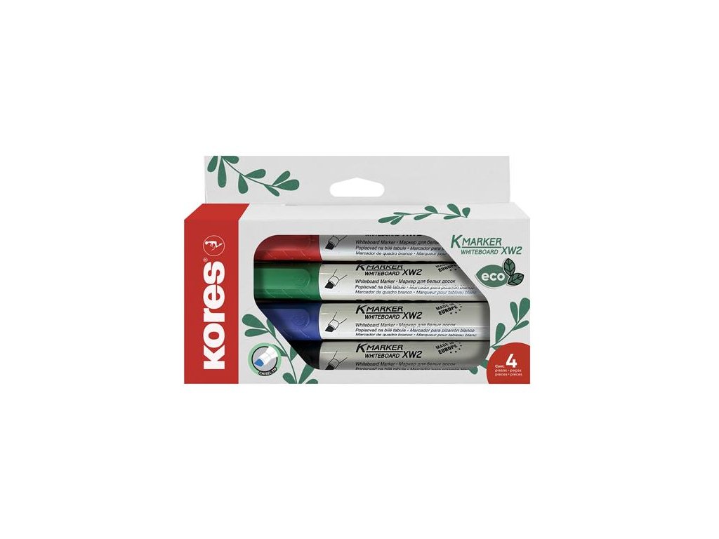 Popisovač na biele tabule a flipchart, 3-5 mm, zrezaný hrot, KORES "ECO K-Marker XW2", 4 rôzne farby