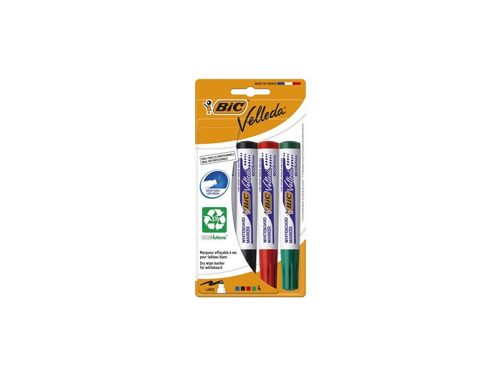 Popisovač na flipchart a tabuľu, 1,4 mm, kužeľový hrot, BIC "Velleda ecolutions", 4 rôzne farby