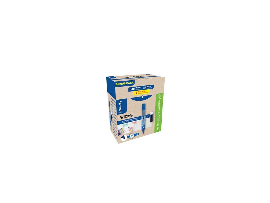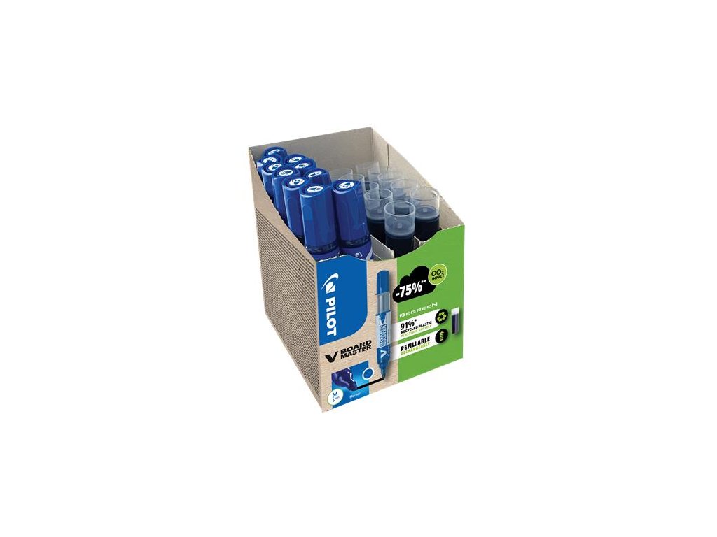 Popisovač na tabule, 2,3 mm, kužeľový hrot, PILOT "V-Board Master, Bonus Pack", modrá + náplň
