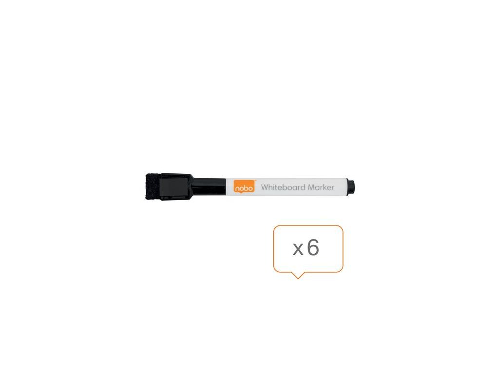 Popisovače na tabule, ktoré sa dajú za sucha stierať, poskytujú vynikajúcu viditeľnosť na neporéznych povrchoch a majú vlastnú gumu na tabuľu v uzávere. Pre optimálny výkon používajte s tabuľami Nobo. - ideálne pre domáce a kancelárske použitie - atrament stierateľný za sucha - atrament s miernym zápachom - s utierkou na tabuľu pripevnenou k uzáveru - farba: čierna - kužeľový hrot - hrúbka: 2 mm - balenie: 6 ks/balenie Značka: NOBO Výrobca: Esselte Kft. Adresa: 1139 Budapest, Lomb u. 37-39. A ép. II. 8., Hungary Web: https://www.accobrands.com/brands/ Email: hungarymarketing@acco.comDodatočné parametre