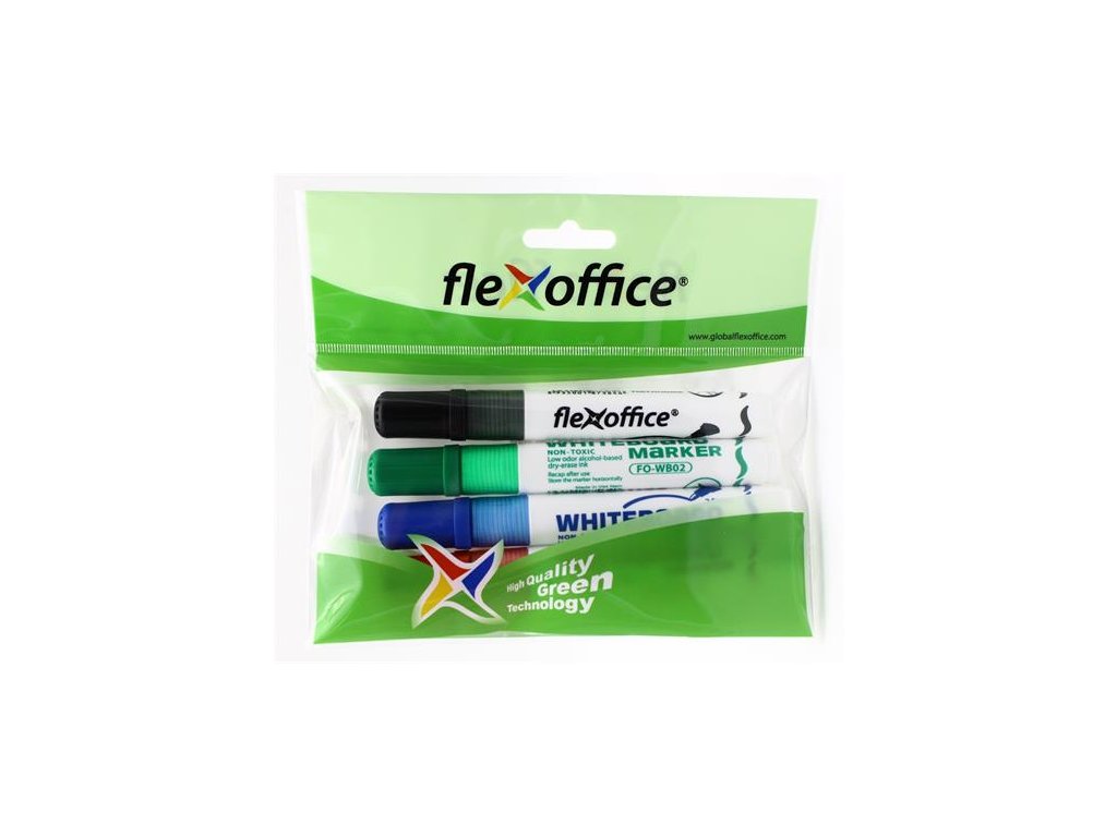 Popisovač na tabule, sada, 2,5 mm, kužeľovitý, sada, FLEXOFFICE "WB02", 4 farby