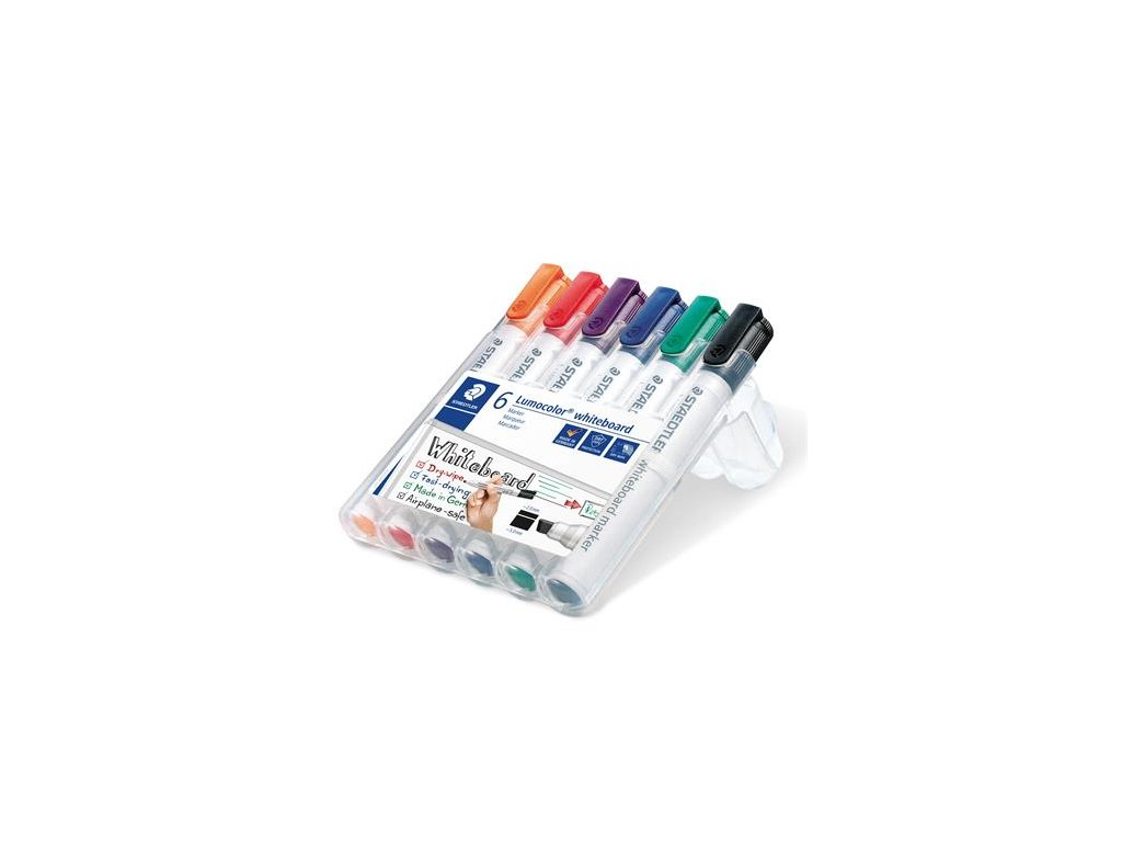 Popisovač na tabule, sada, 2-5 mm, zrezaný hror, STAEDTLER "Lumocolor 351 B", 6 rôznych farieb