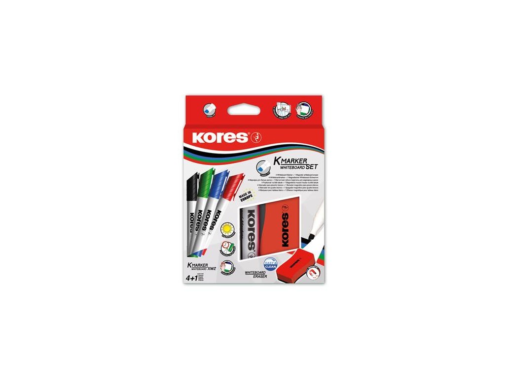 Popisovač na tabule a flipchartové tabule, sada, magnetická stieka na tabule, 3-5 mm, zrezaný hrot, KORES, 4 rôzne farby