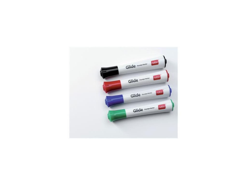 Popisovače na tabule a flipchartové bloky, 3 mm, kužeľový hrot, NOBO "Glide", 4 rôzne farby
