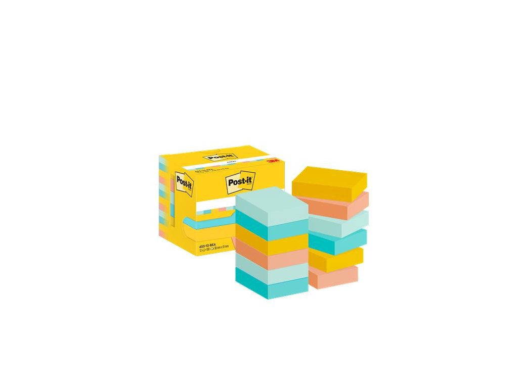 Poznámkový bloček, 38x51 mm, 12x100 lap, 3 M POSTIT "Beachside", rôzne farby