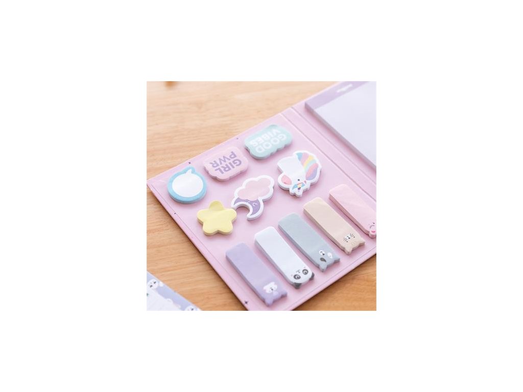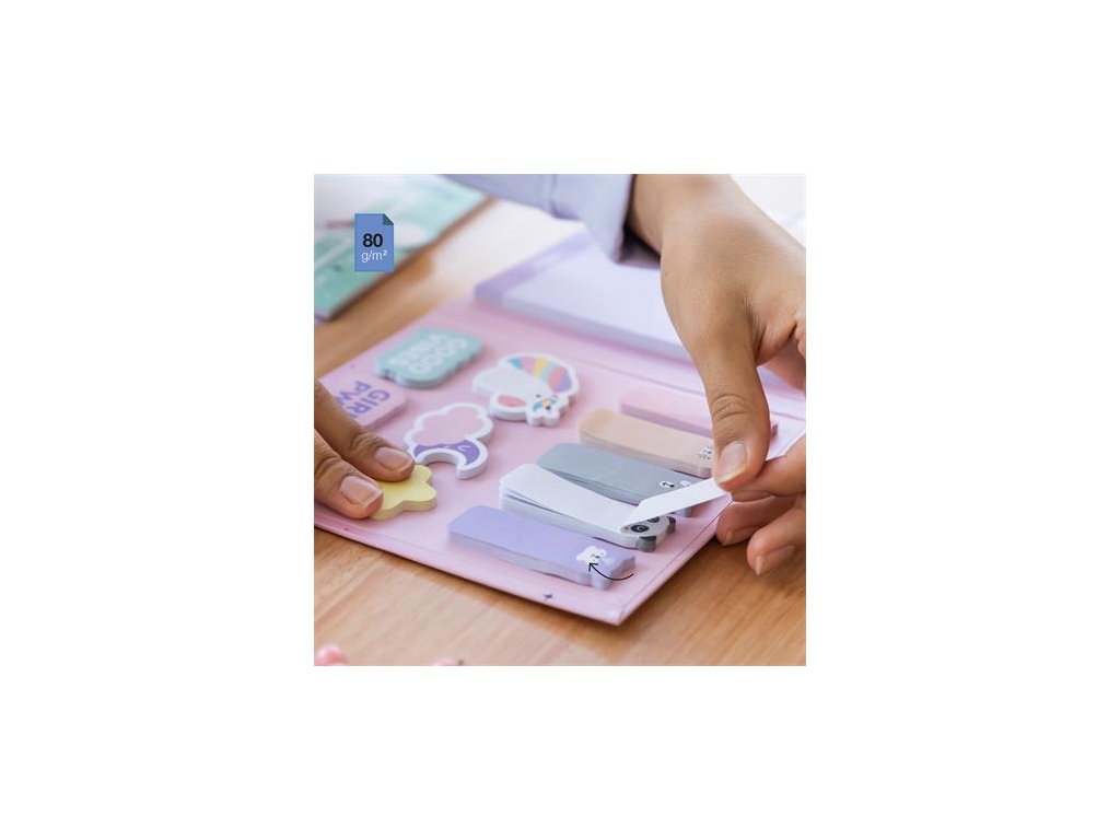 Poznámkový blok s mačičkami a samolepiacimi doplnkami, tvrdá obálka, 50 listov,bodkované listy, 6 mini samolepiacich bločkov (280 listov) , 4 hárky samolepiek so zvieratkami (20 ks), 5 druhov štítkov (200 listov), rozmery poznákového bloku: 160 x 190 mm