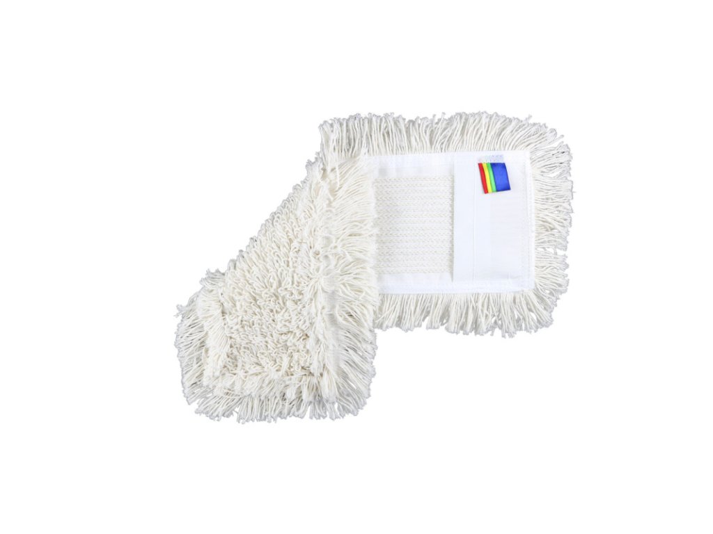 Profi Mop bavlna kapsový, s farebným značením, 40 cm Kapsový bavlnený mop je vysokokvalitný bavlnený mop so šírkou 50 cm a kapsami po stranách pre lepšie uchytenie na držiak mopu. Jednotlivé vlákna bavlny sú na zadnej strane navzájom prepletené kvôli dlhšej životnosti mopu. Mopová časť a vrecká(kapsy) sú na mop šité s polyesterovou priadzou s vysokou trvanlivosťou. Na zvýšenie odolnosti polyesterovej spodnej textílie a vreciek sa používa ešte polyesterová stuha na zadnej strane, ktorú je možné farebne rozlíšiť aby mohol byť využívaný i v systéme HACCP. Tento bavlnený slučkový mop možno prať až 200 krát pri 95 ° C. Po prvom praní priadza výrazne zväčší svoj objem, čo zabezpečí účinnejšie umývanie a odstraňovanie nečistôt z podláh. Používa sa prevažne na mokré čistenie. Pred prvým použitím doporučujeme vyprať mop na 60°C Tento mop je kompatibilný pre všetky typy plastových a drôtených kapsových držiakov. Mop má na opačnej časti farebné prúžky, ktorými sa rozlišuje prostredie kde sa má s ním umývať ako, napr. jednotlivé oddelenia v nemocniciach, potravinárstve a iných... Bavlnený mop sa používa na umývanie podlahy, ako napr. prírodný a umelý kameň (dlažba), linoleum, guma atď. Parametre: Rozmery: 40 cm Farba: Farebné značenie Balenie obsahuje 1ks.Dodatočné parametre
