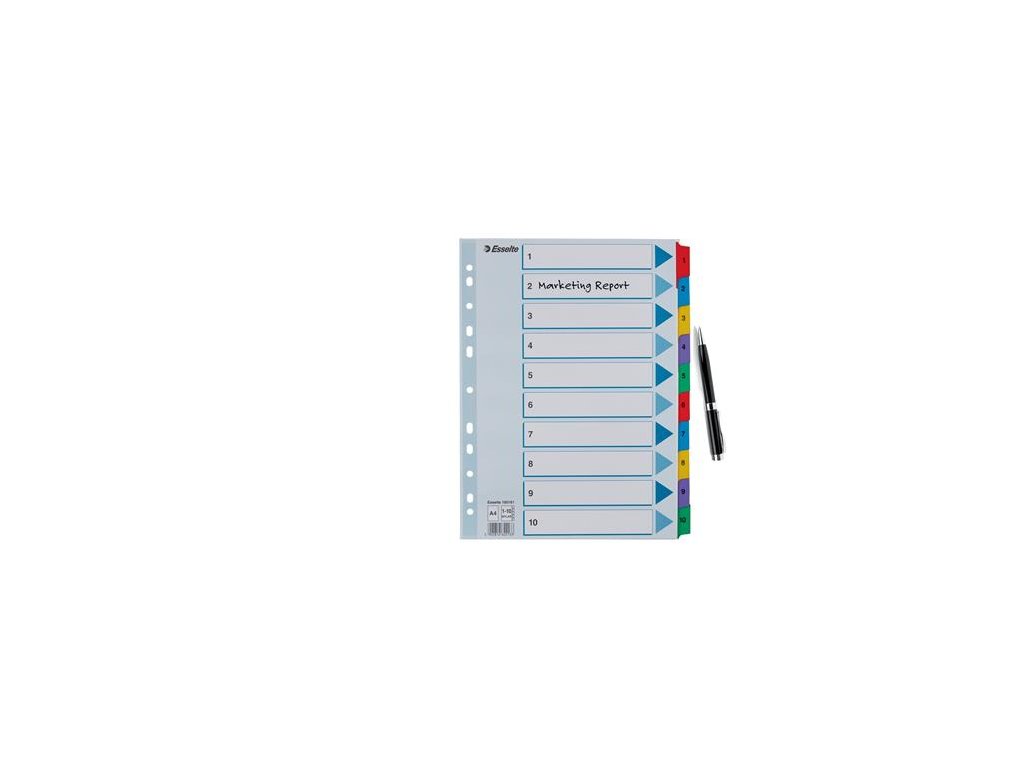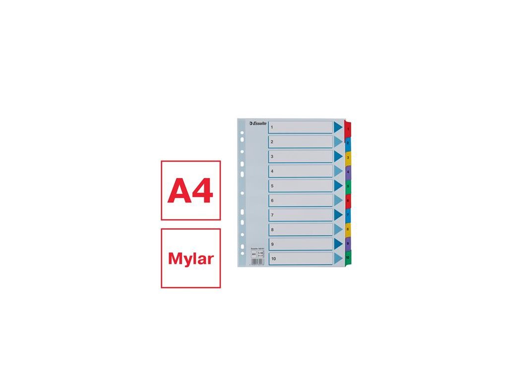 Register, kartón, A4, 1-10, ESSELTE "Mylar"