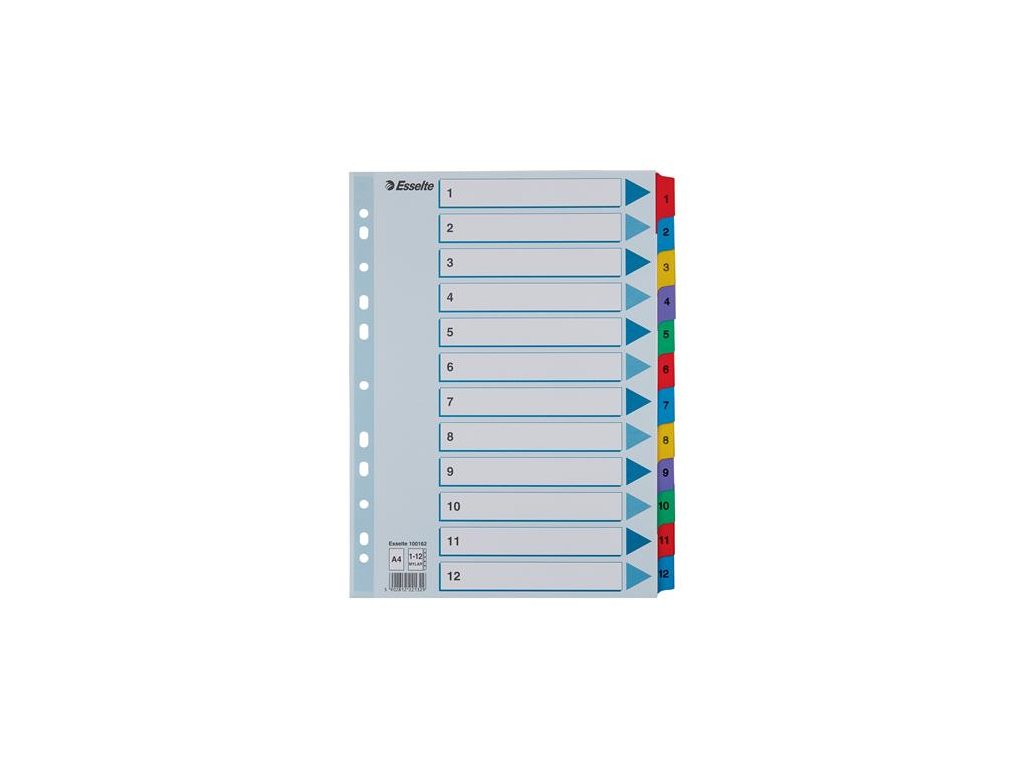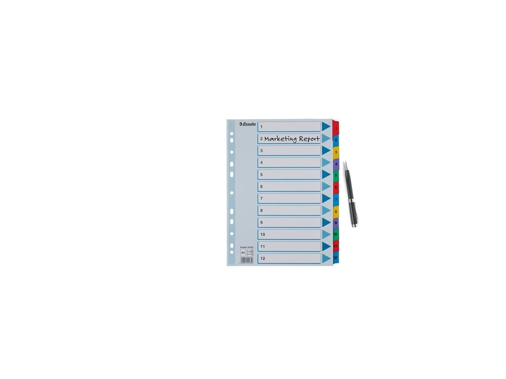Register, kartón, A4, 1-12, ESSELTE "Mylar"
