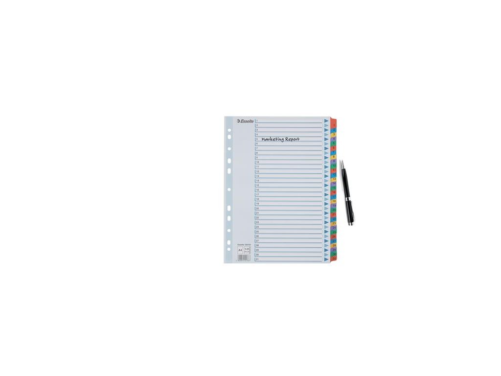 Register, kartón, A4, 1-31, ESSELTE "Mylar"