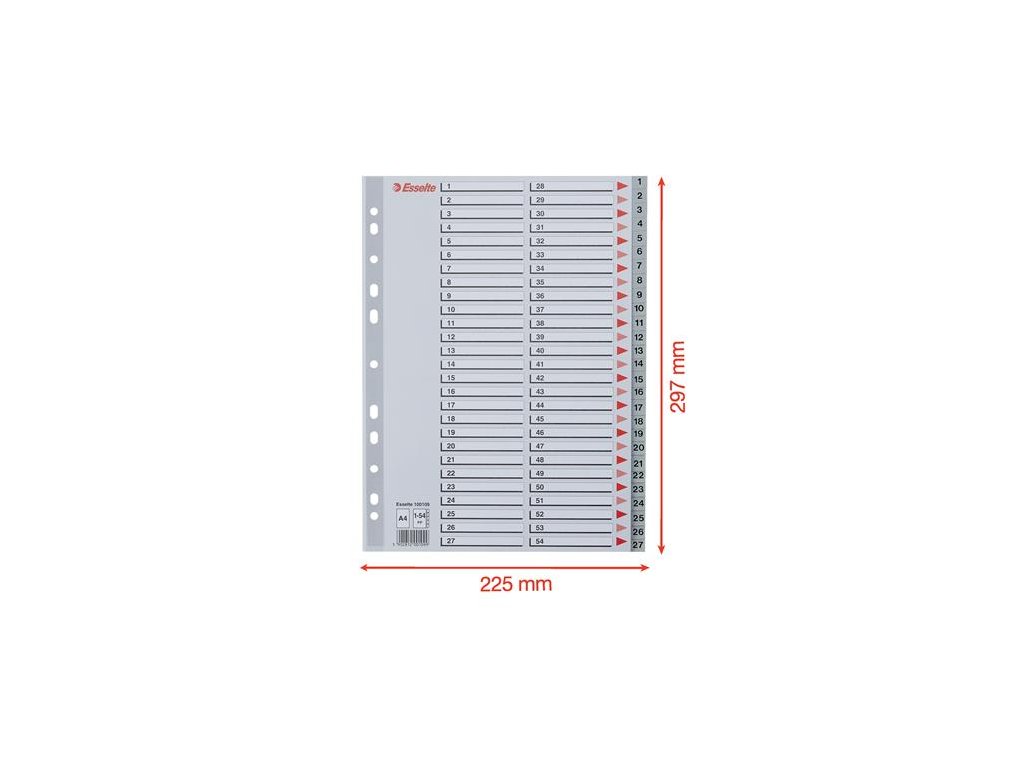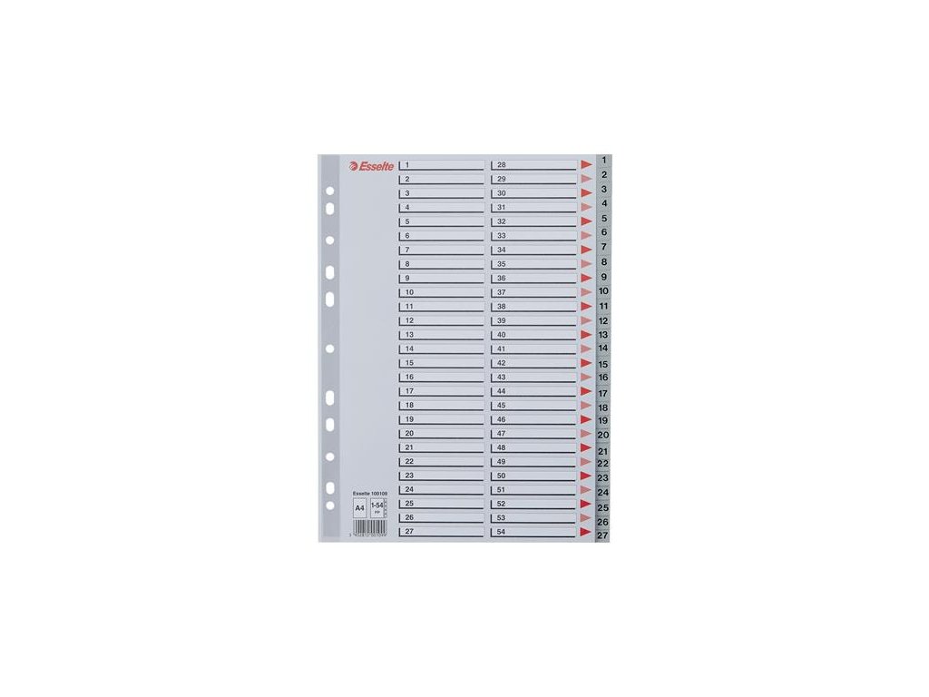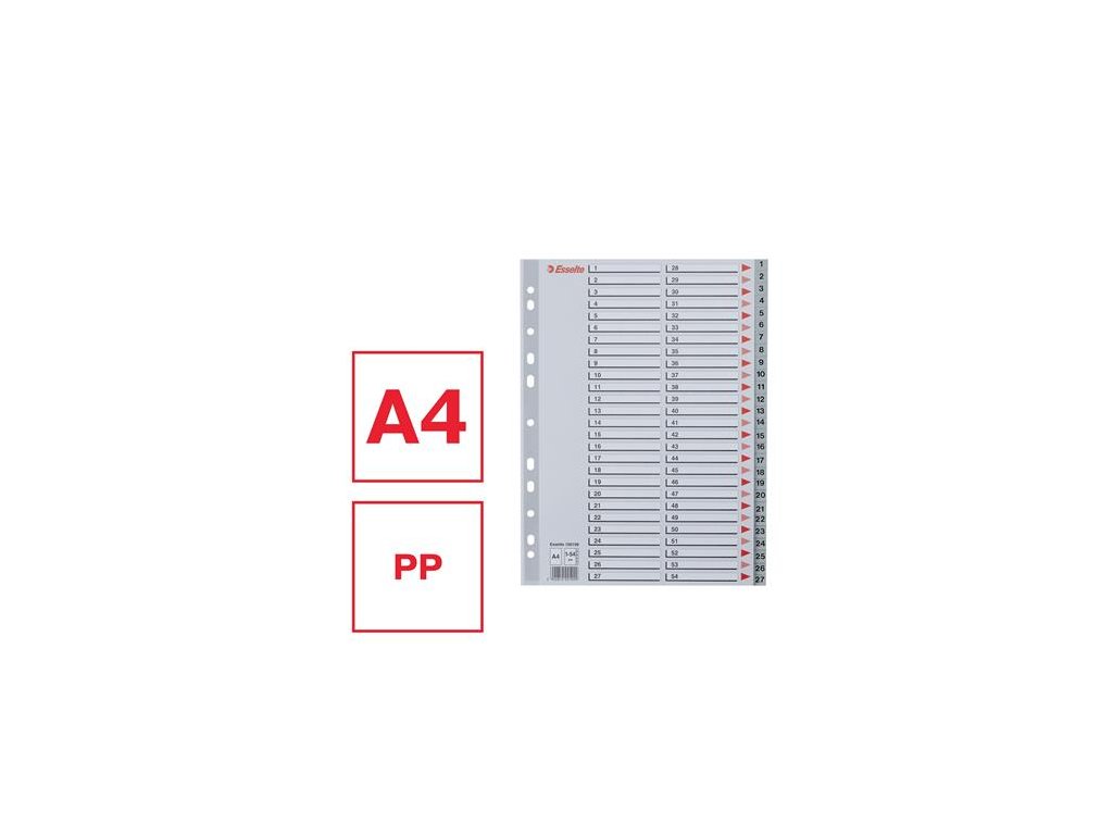 Register, plastový, A4, 1-54, ESSELTE, sivý
