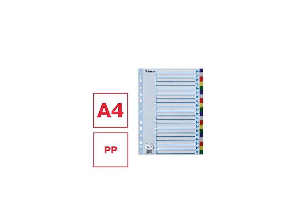 formát: A4 praktické riešenie pre triedenie dokumentov 0,12 mm kvalitný plastový materiál počet dier: 11 Značka: ESSELTE Výrobca: Esselte Kft. Adresa: 1139 Budapest, Lomb u. 37-39. A ép. II. 8., Hungary Web: https://www.accobrands.com/brands/ Email: hungarymarketing@acco.comDodatočné parametre