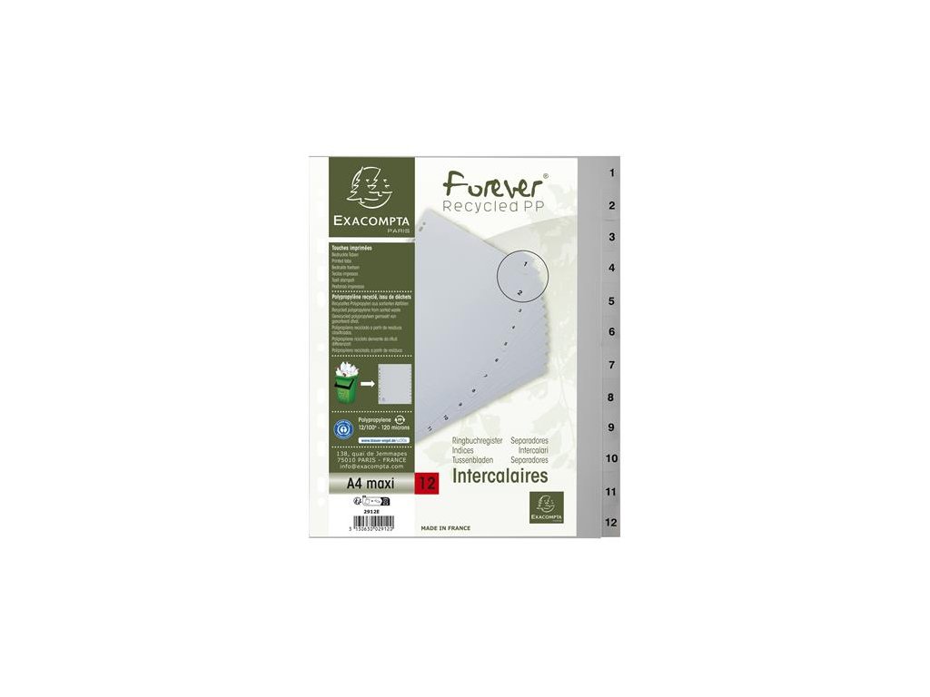 Register, plastový, A4+, 1-12, EXACOMPTA, sivý