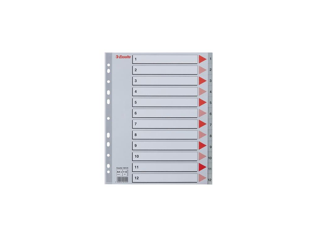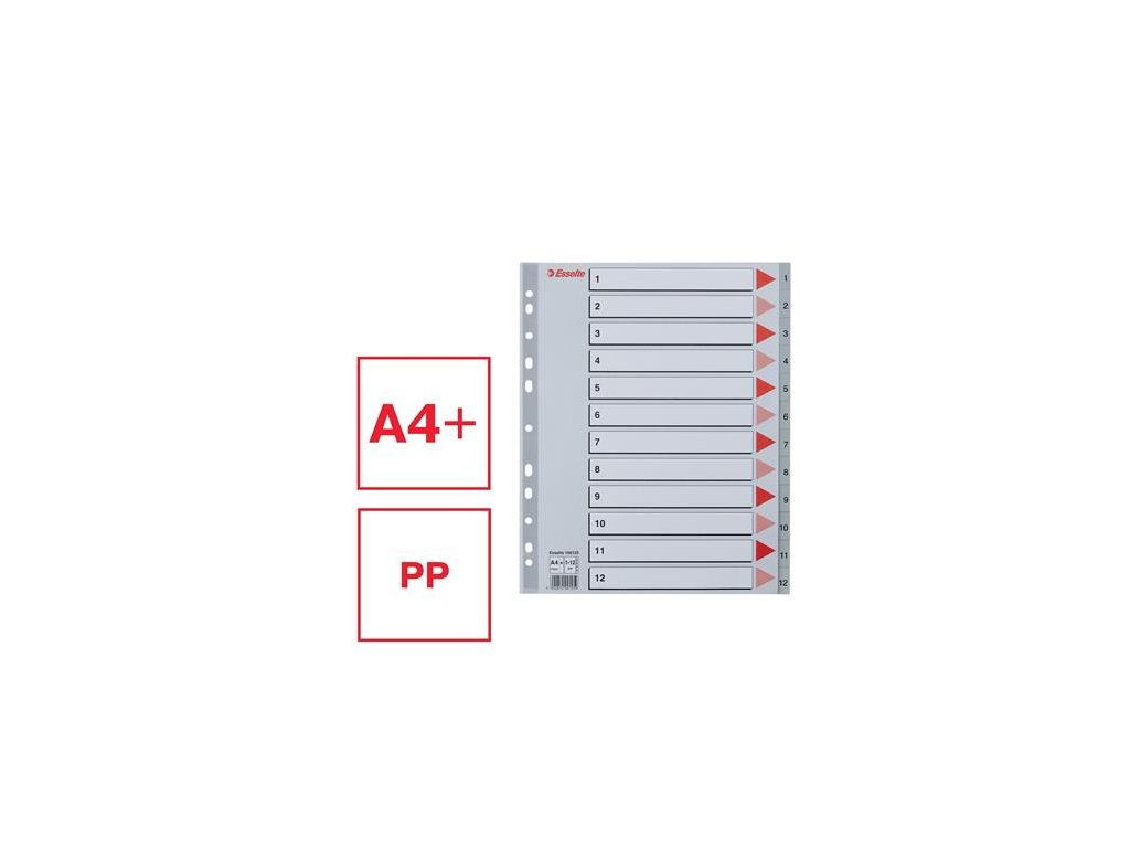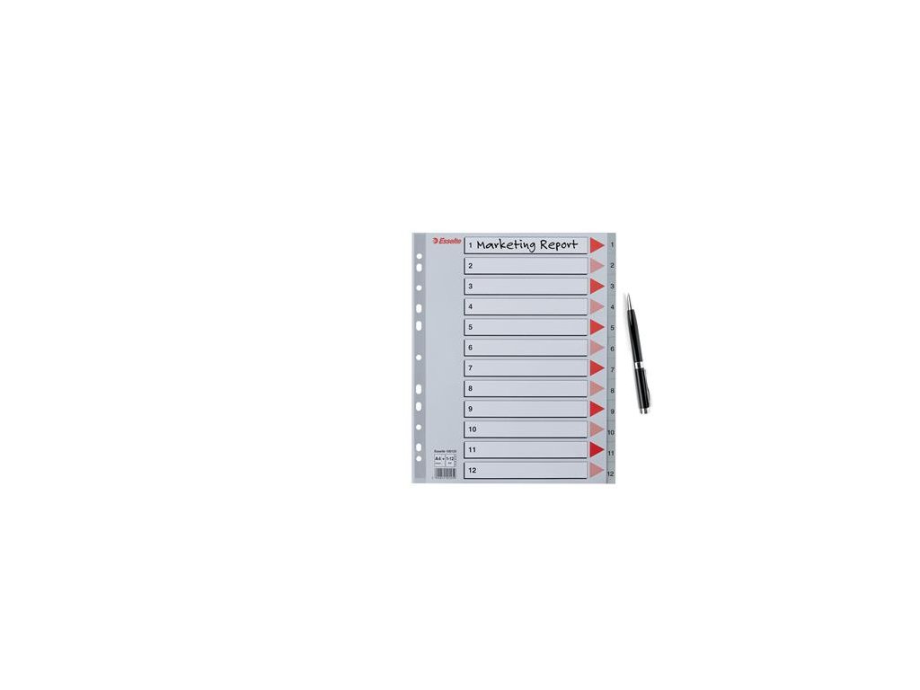 Register, plastový, A4 Maxi, 1-12, ESSELTE, sivý