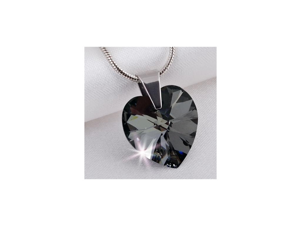 Retiazka, prívesok v tvare srdiečka, s Black Diamond krištáľom SWAROVSKI®, 18 mm, ART CRYSTELLA®