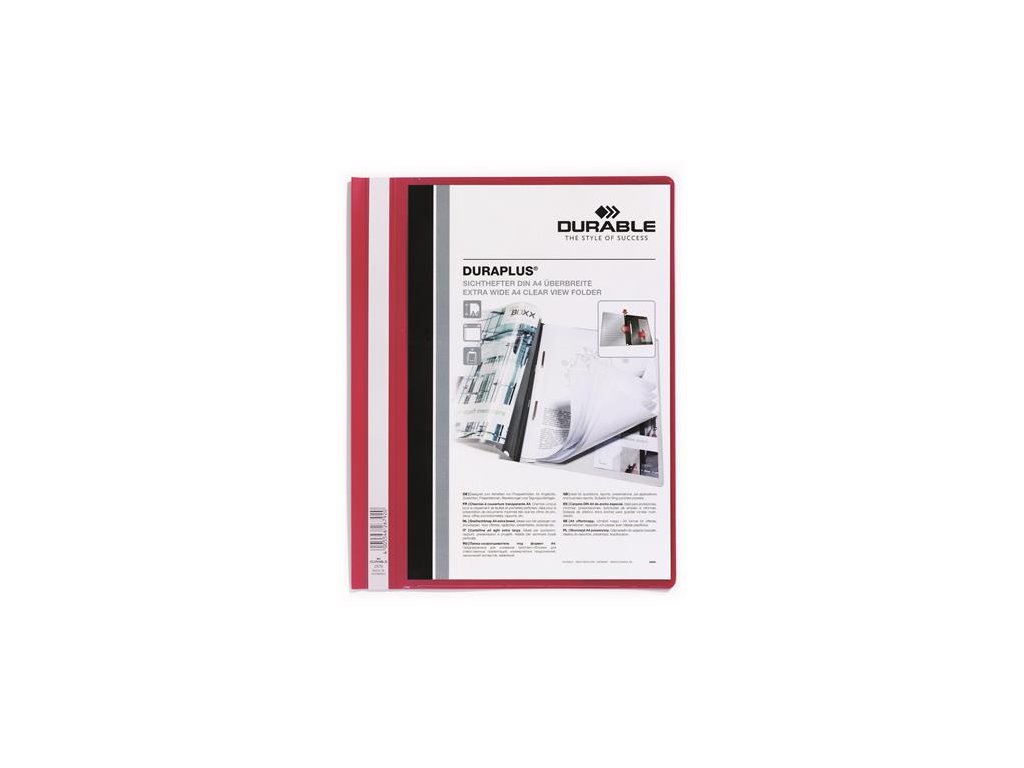 Rýchloviazač, A4, široký, priehľadné vrecko, DURABLE "DURAPLUS®", červený