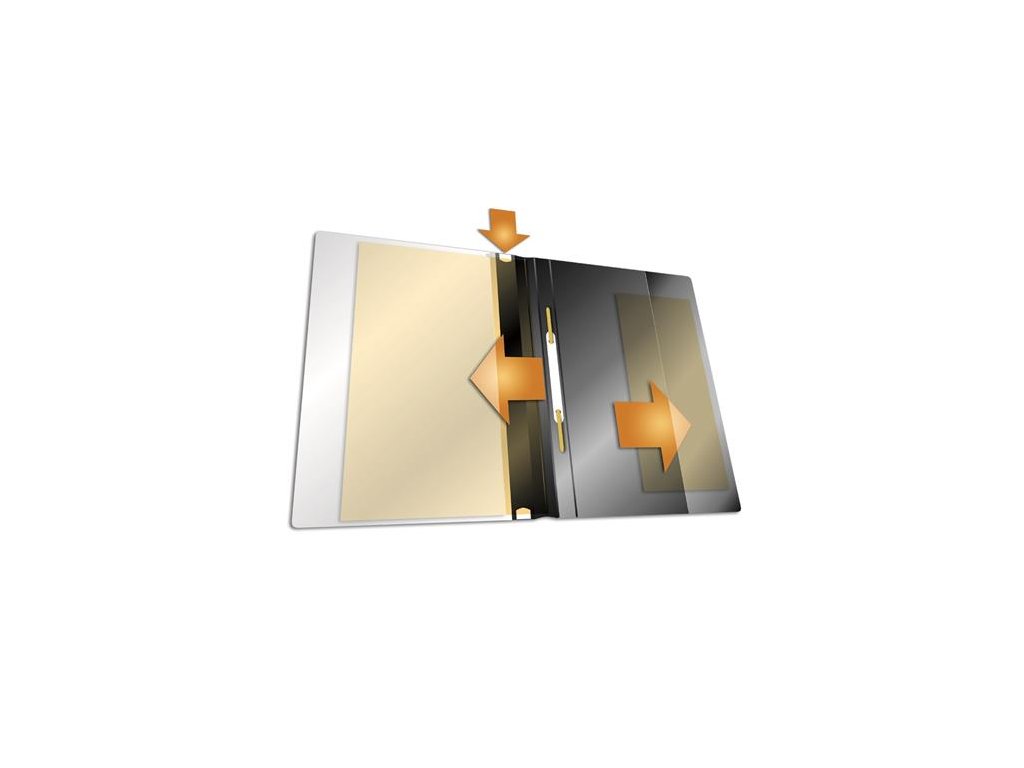 Rýchloviazač s priehľadnou prednou stranou a farebnou zadnou stranou, určený na ukladanie ponúk, reportov, prezentácií, žiadostí o pracovné pozície, obchodných správ a pod.