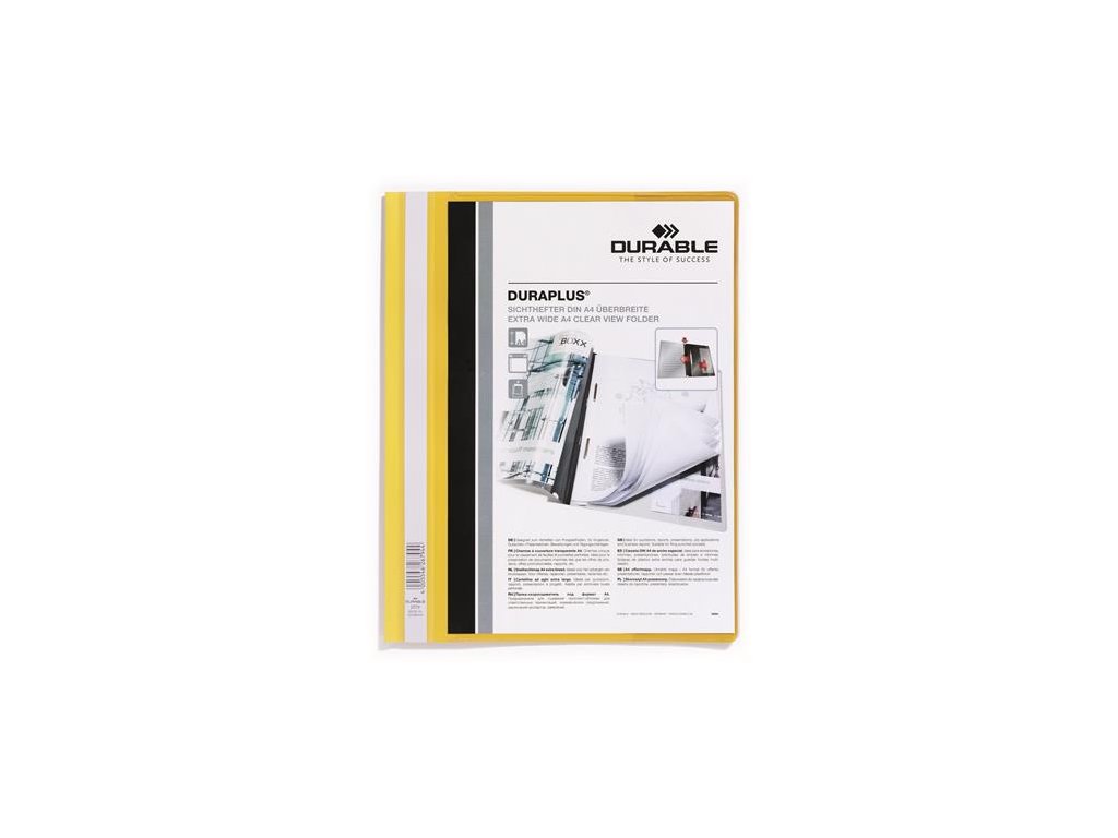 Rýchloviazač, A4, široký, priehľadné vrecko, DURABLE "DURAPLUS®", žltý