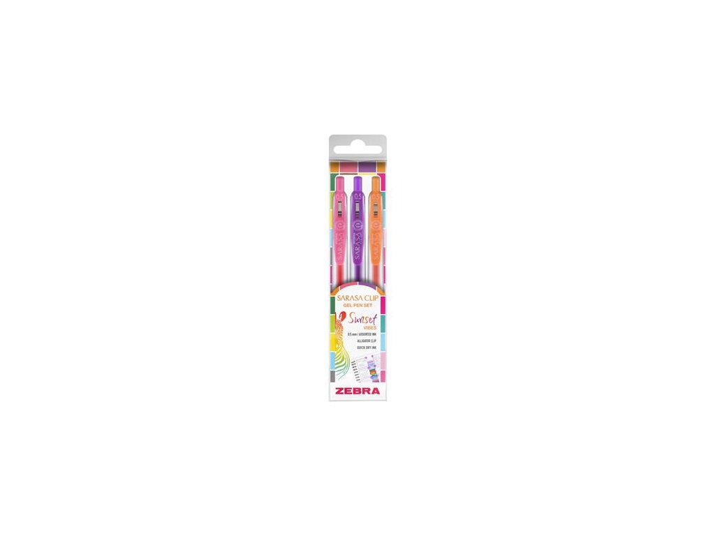 Sada gélových pier Sarasa Clip v troch kusoch „Sunset“ s jedinečnými farebnými kombináciami a veselým balením určite vynikne medzi ostatnými písacími potrebami.– vďaka flexibilnému klipu budete mať pero vždy po ruke, či už ho pripnete na vrecko, diár alebo zápisník