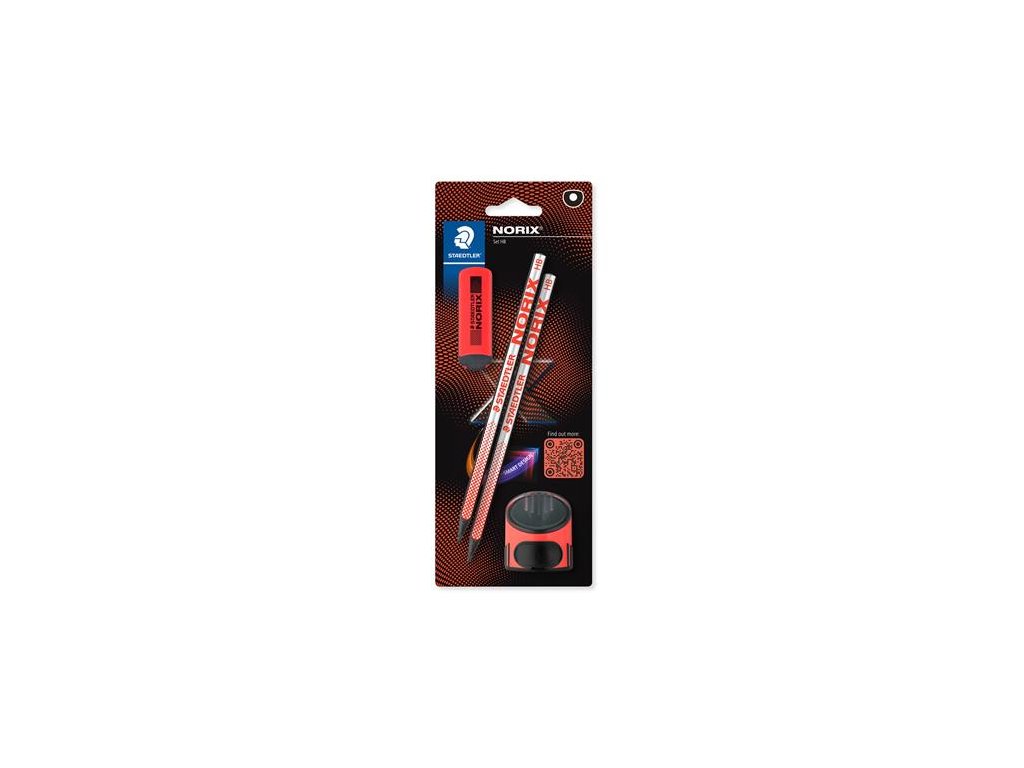 Sada grafitových ceruziek so strúhadlom a gumou, tvrdosť HB, STAEDTLER "Norix® 181", koralovo červená