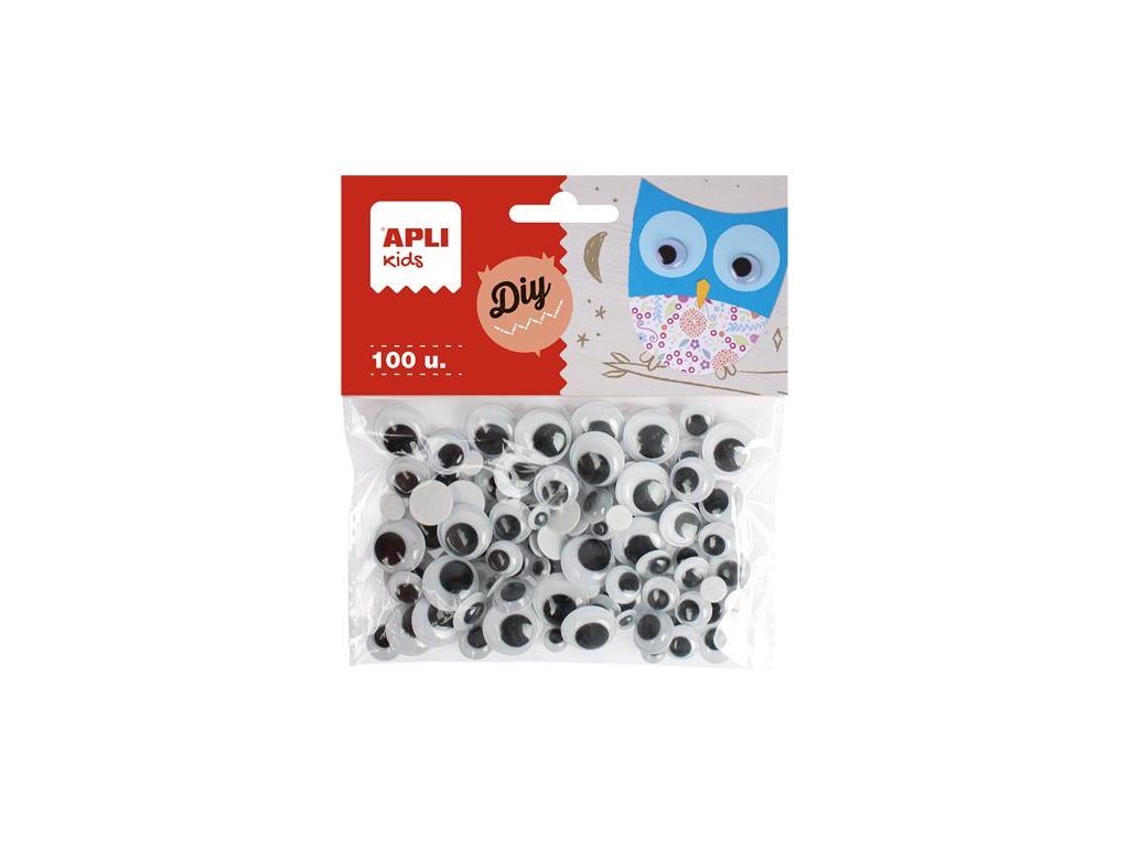 Samolepiace pohyblivé očká, okrúhle, APLI "Creative", čierne-biele