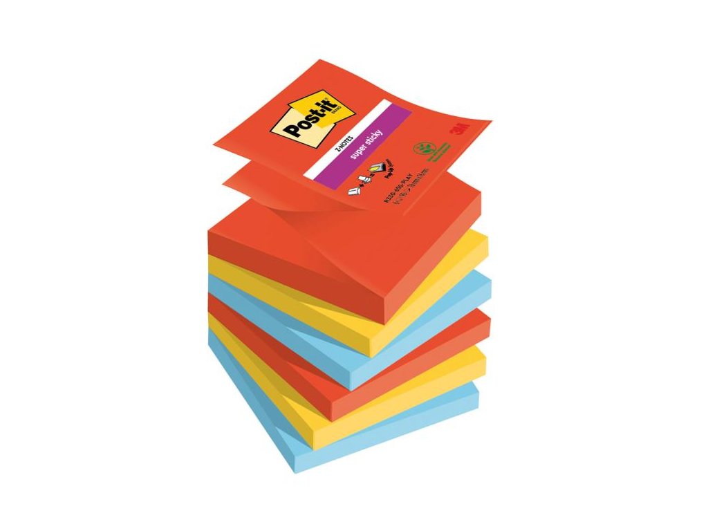 Samolepiace Z-bločky Post-it Super Sticky PLAYFUL, veľkosť 76x76 mm, 6 bločkov po 90 lístkov