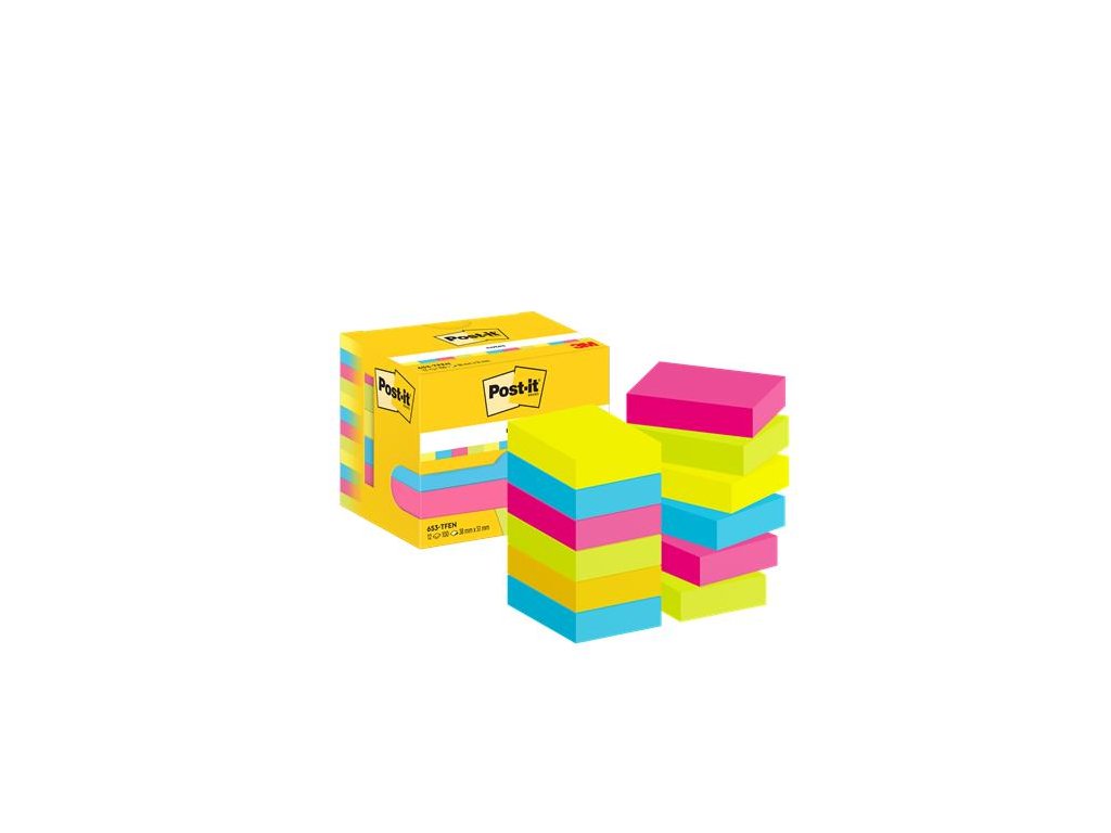 Samolepiaci bloček, 38x51 mm, 12x100 listov, 3M POSTIT, energické farby