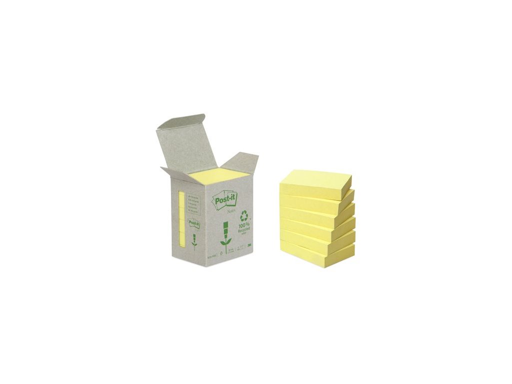 Samolepiaci bloček, 38x51 mm, 6x100 listov, ekologický, 3M POSTIT, žltý