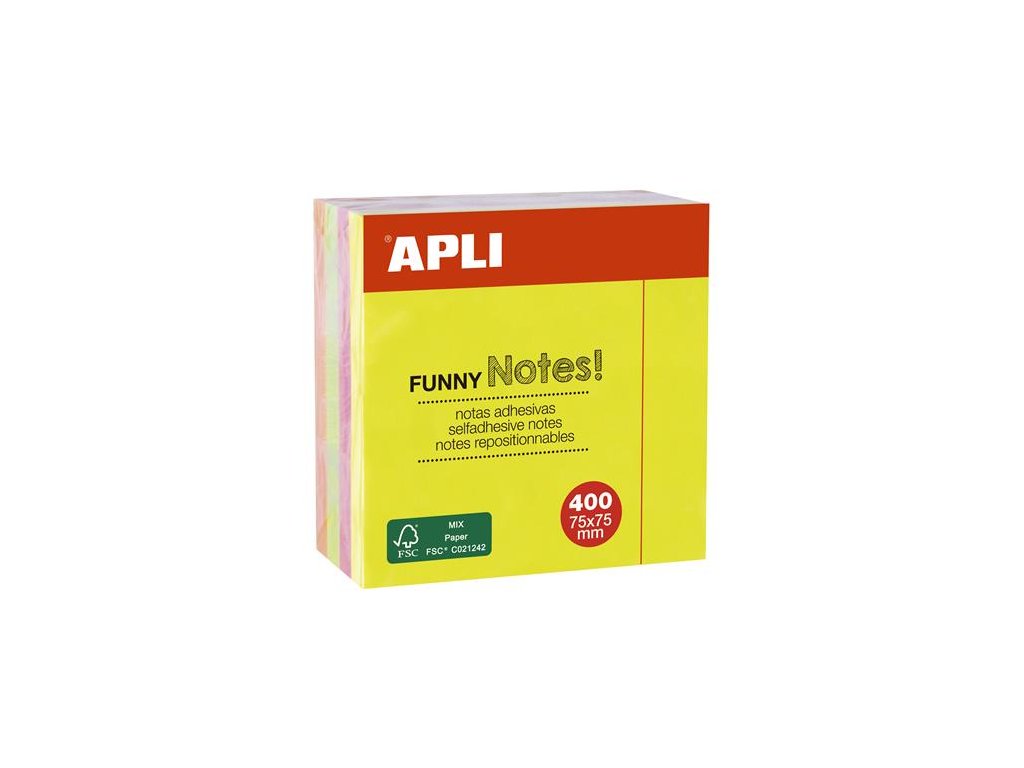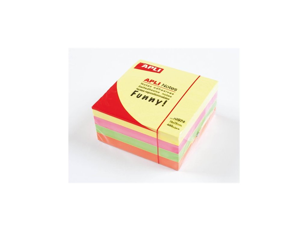 Samolepiaci bloček, 75x75 mm, 400 listov, APLI, neónový
