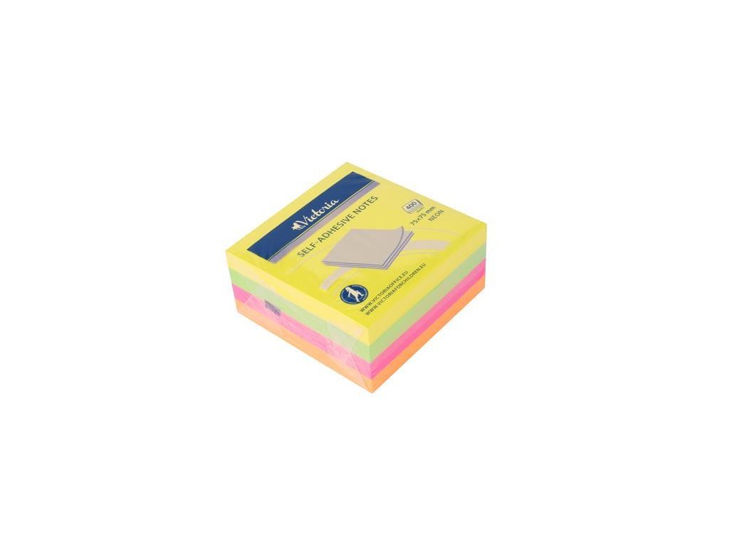 Samolepiaci bloček, 75x75 mm, 400 listov, VICTORIA OFFICE, neónový