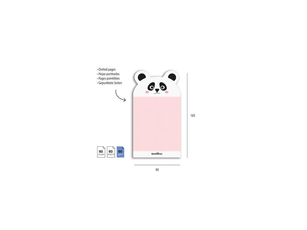 Samolepiaci bloček "Panda": 60 listov, papier 90 g/m2, bodkované strany , veľkosť samolepiaceho bločku: 90 x 165 mm