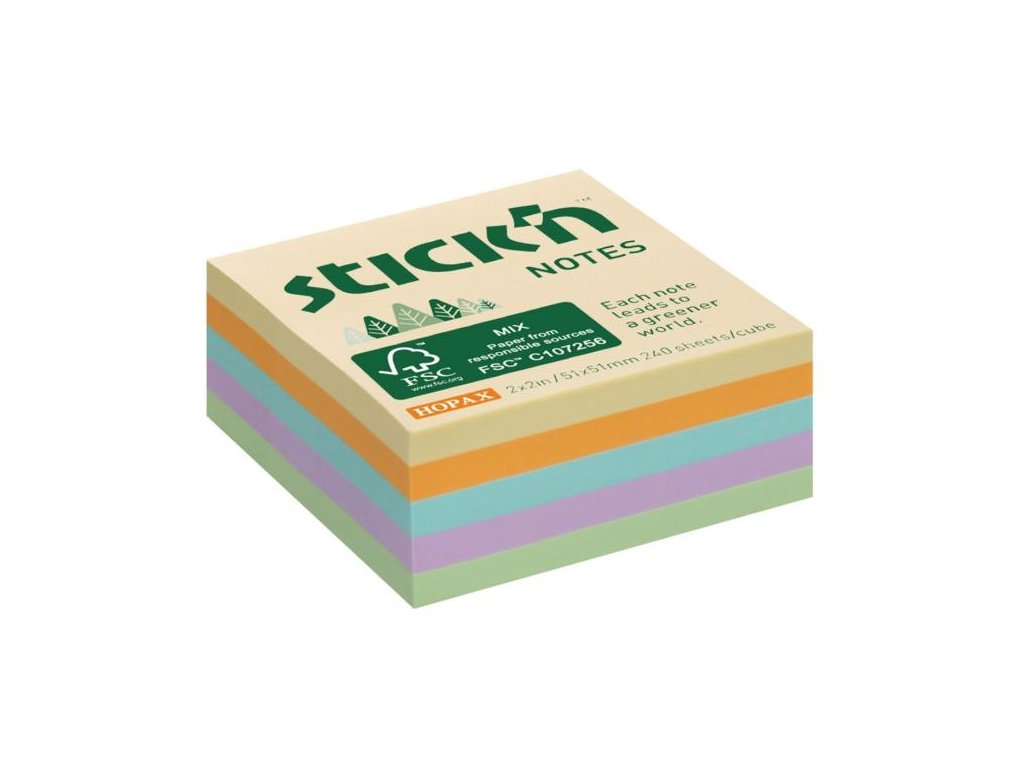 Samolepiaci bloček mini, 51x51 mm, lúčny mix pastelových farieb, 240 lístkov