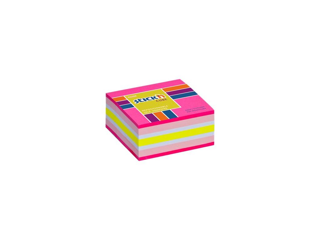 Samolepiaci poznámkový blok, 51x51 mm, 250 listov, STICK N, neónovo ružová