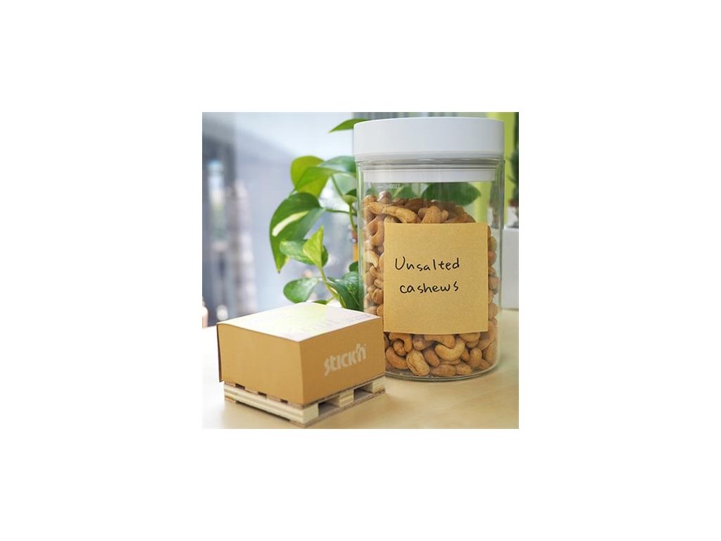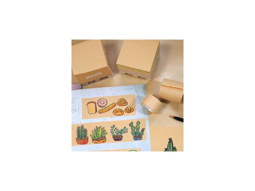 Samolepiaci poznámkový blok, 76x76 mm, 400 listov, mini paleta, STICK N "Kraft Cube", hnedá