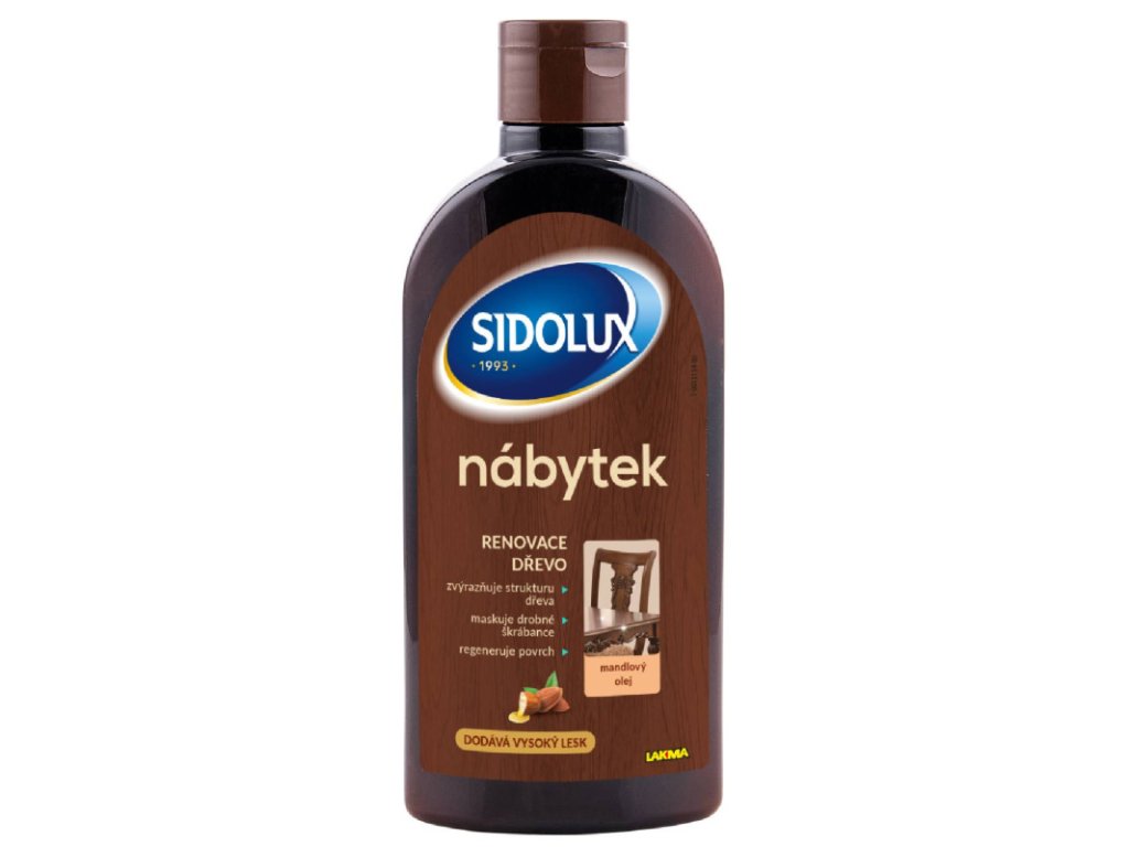 SIDOLUX na nábytok s mandľovým olejom 300ml Produktová rada Sidolux na nábytok poskytuje účinnú a komplexnú údržbu pre všetky typy nábytku. Produkty udržiavajú nábytok dlhodobo žiarivo čistý, dôkladne ho čistia a chránia jeho povrchy pred negatívnymi účinkami vlhkosti. Sidolux renovačné mlieko na nábytok s mandľovým olejom je praktický prípravok na domácu starostlivosť o drevo, dyhu a laminát. Navrátenie strateného lesku, ľahká aplikácia a príjemná mandľová vôňa z neho robia ideálnu voľbu pre pravidelné ošetrenie nábytku v obývačke, spálni aj jedálni. Toto renovačné mlieko je určené na obnovu vzhľadu a povrchovej ochrany nábytku. Použite ho na matné aj lesklé povrchy z dreva, dyhy a laminátu, keď chcete odstrániť zašlý vzhľad, zvýrazniť štruktúru materiálu a dodať povrchu hladký lesk bez mastného filmu. Vlastnosti: Obnovuje lesk opotrebovaného nábytku a dodáva povrchu zjednotený vzhľad Chráni a impregnuje povrch proti bežnému opotrebovaniu a nečistotám Jednoduchá aplikácia a rýchle leštenie pre úsporu času pri údržbe domácnosti Príjemná mandľová vôňa, ktorá zanecháva sviežu arómu po ošetrení Vhodné na drevo, dyhu aj laminát - univerzálny produkt pre rôzne povrchy Použitie: Testujte na menej viditeľnom mieste pri citlivých povrchoch Nepoužívajte na surové, neošetrené drevo Pre väčšie plochy pracujte po menších úsekoch, aby ste zaistili rovnomerný výsledok Pre najintenzívnejší lesk nanášajte tenké vrstvy a dôkladne leštite Používajte mäkké mikrovláknové alebo bavlnené utierky na rovnomerné rozloženie Pri starších alebo veľmi opotrebovaných kusoch opakujte ošetrenie podľa potreby na obnovenie pôvodného vzhľadu Spotrebitelia ocenia rýchlosť a viditeľný výsledok bez zvyšku lepivosti či škvŕn Pre dosiahnutie najlepších výsledkov postupujte jednoduchými krokmi. Pred aplikáciou povrch zbavte prachu a nečistôt. Prípravok dôkladne pretrepte, naneste malé množstvo na mäkkú utierku a rovnomerne rozotrite po povrchu. Po krátkom vyleštení jemne preleštite do vysokého lesku druhou suchou utierkou. Sidolux renovačné mlieko kombinuje jednoduchosť použitia s viditeľnými výsledkami. Je navrhnuté tak, aby dodalo hĺbku farby a lesk bez zbytočného leštenia a pritom zanechalo povrch príjemne voňavý. Vďaka kompaktnému baleniu 300 ml je vhodné mať ho po ruke pre pravidelnú starostlivosť alebo rýchlu obnovu nábytku pred návštevou hostí. Cena je za bal./300mlDodatočné parametre