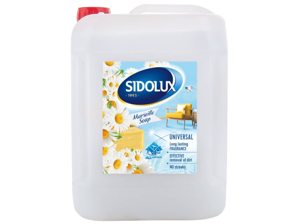 SIDOLUX UNIVERSAL Marseillské mydlo 5L Univerzálne čistiace prostriedky na všetky umývateľné povrchy. Jednoduchosť použitia a dokonalé čistiace schopnosti sú podčiarknuté príjemnou vôňou, ktorá vydrží v priestore ešte dlho po upratovaní. Závan Stredomoria, vyhlásená vône z okolia Marseille, sa u Vás doma môže zabývať nastálo. Stačí používať Sidolux univerzálny čistiaci prostriedok s vôňou marseillského mydla. Prostriedok nielen že nádherne vonia, ale tiež si bez problémov poradí s čistením rôznorodých povrchov! Tento univerzálny čistiaci prostriedok je určený na rýchle a efektívne odstraňovanie bežných nečistôt a mastnoty z umývateľných povrchov doma aj v kancelárii. Vhodný na podlahy, dlažbu, laminát, povrchy v kuchyni a kúpeľni, rovnako ako na ostatné umývateľné plochy, ktoré si prajete umyť a zároveň prevoňať. Sidolux univerzálny čistiaci prostriedok s vôňou marseillského mydla je už po mnoho rokov neodmysliteľnou súčasťou miliónov európskych domácností. A nie náhodou. Produkt sa stal synonymom čistoty a krásne vône, ktorá sa v domácnosti rozhostí po upratovaní. Vďaka unikátnemu systému Soda Power, ktorý je súčasťou prostriedku a ktorého pôsobenie zmäkčuje vodu, odstraňuje Sidolux univerzálny čistiaci prostriedok veľmi rýchlo nečistoty z povrchu. Sidolux univerzálny čistiaci prostriedok je Vaším spoľahlivým pomocníkom pri domácom upratovaní. Produkt sa skvele hodí na čistenie všetkých umývateľných povrchov. Vlastnosti: Univerzálne použitie na široké spektrum umývateľných povrchov Soda Power na zmäkčenie vody a účinné odmastenie Možnosť použitia ako riedený roztok na bežné čistenie aj ako koncentrát na silné znečistenie Elegantná vôňa marseillského mydla s tónmi harmančeka a jazmínu, ktorá prevonia domácnosť Objem 5 l – ekonomické balenie Použitie: Na každodenné upratovanie používajte slabšie riedenie, pri mastných škvrnách zvýšte koncentráciu Teplá voda zintenzívni čistiaci účinok, najmä pri údržbe podláh Pre dlhodobé prevoňanie urobte vytieranie večer – vôňa sa bude šíriť cez noc Na bežné vytieranie a utieranie povrchov pripravte riedený roztok podľa dávkovania. Na silné nečistoty aplikujte neriedený alebo menej riedený koncentrát a krátko zotrite. Produkt je ideálny do teplej alebo horúcej vody – Soda Power sa pri vyššej teplote aktivuje a zlepšuje účinnosť proti mastnote. Dávkovanie: 1,5 uzáveru do 5 l vody (orientačne). Pri vytieraní s mopom odporúčame použiť teplú alebo horúcu vodu pre lepší účinok Soda Power. Pre silné znečistenie použite vyššiu koncentráciu a krátko zotrite vlhkou handrou alebo mopom. Sidolux Universal Marseillské mydlo s tónmi harmančeka a jazmínu spája praktickosť univerzálneho čističa s príjemným vonným zážitkom. Pokiaľ hľadáte prostriedok, ktorý nielen čistí, ale aj prevonia domácnosť niekoľkými dňami, a zároveň zvládne mastnotu vďaka Soda Power, je táto voľba vhodná práve pre vás. Cena je za bal./5LDodatočné parametre