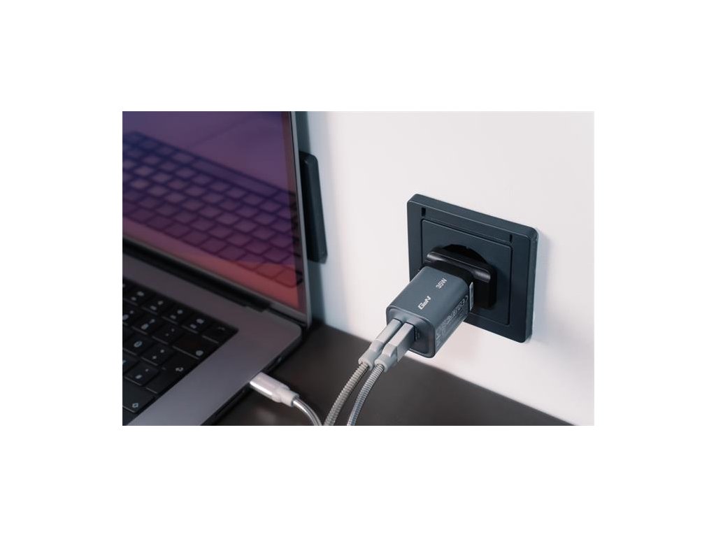 Podporuje súčasné nabíjanie až 2 zariadení (celkový výkon max. 35 W) v tenkom dizajne veľkosti dlane. So svojimi skladacími americkými stopkami a vymeniteľnými zástrčkami pre EÚ a Spojené kráľovstvo je dokonalým spoločníkom na cesty. -Galium Nitride (GaN) technológia: poskytuje vysoký výkon, rýchle a efektívne nabíjanie a produkuje menej tepla -1 x USB-C® PD 3.0 až 35 W -1 x USB-A QC 3.0 až 18 W - super rýchle nabíjanie s USB Power Delivery 3.0, PPS a Quick Charge 3.0 - technológia programovateľného napájania (PPS) poskytuje správne množstvo energie pre ideálne nabíjanie - vyrobené z kvalitných materiálov odolných voči ohňu - ochrana proti nadprúdu - ochrana proti prepätiu - ochrana proti skratu obvod - ochrana proti prehriatiu - materiál: Plast Plášť: PC Ohňovzdorný materiál - rozmery: 49 x 32 x 31 mm (Š x V x H) - hmotnosť: 56 g - balenie bez plastov - obsah balenia: nabíjačka GaN EU adaptér UK adaptér Sprievodca rýchlym spustenímDodatočné parametre
