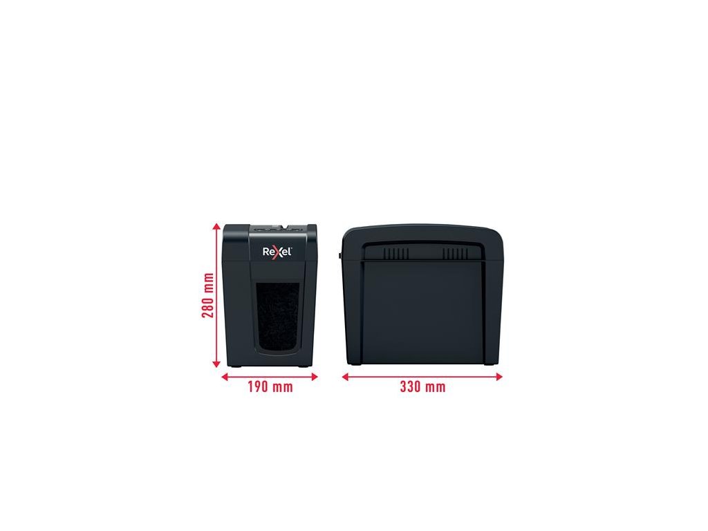 prevažne pre domáce použitie, ale je vhodný aj do kancelárie skartuje až 6 listov A4 (80 g / m2) naraz interval skartovacieho cyklu - 6 minút objem odpadového koša 10 litrov (100 listov A4) úroveň bezpečnosti: P-4 DIN skartuje na konfety (4 × 40 mm) rýchlosť skartovanie: 1,8 m/min skartuje sponky aj spinky nízka hlučnosť Whisper-Shred <60 dBA rozmery produktu: 204 x 355 x 351, hmotnosť: 4,8 kg záruka: 2 roky (na zariadenie), 2 roky (na rezacie nože) Značka: REXEL Výrobca: Esselte Kft. Adresa: 1139 Budapest, Lomb u. 37-39. A ép. II. 8., Hungary Web: https://www.accobrands.com/brands/ Email: hungarymarketing@acco.comDodatočné parametre