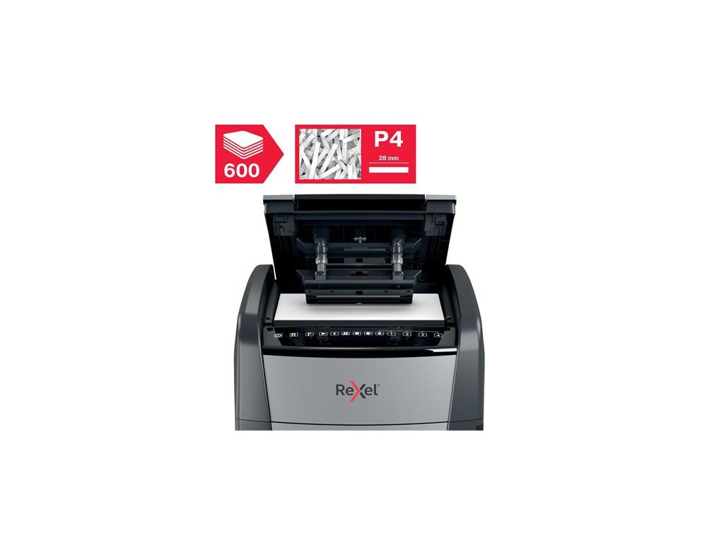 Skartovací stroj, konfety, 600 listov, REXEL, "Optimum AutoFeed+ 600X"